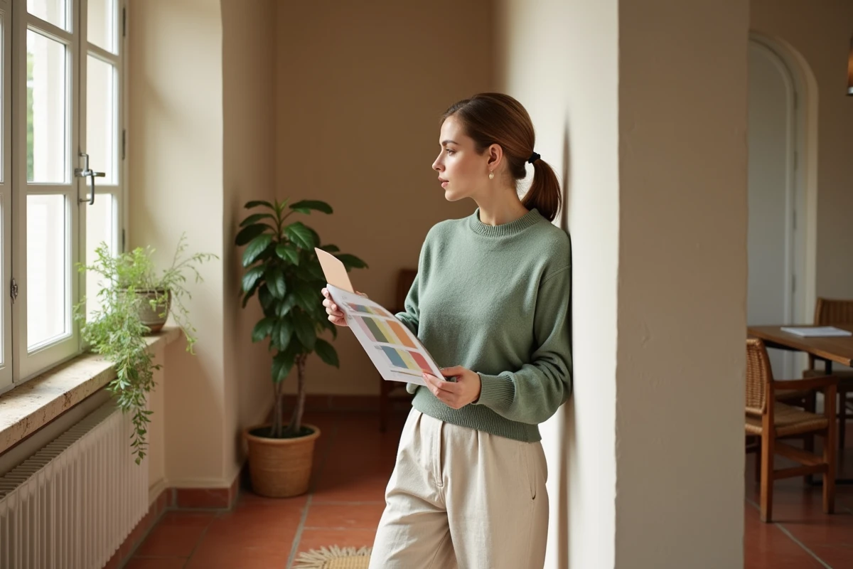 Pour une intégration réussie des tomettes dans votre espace de vie, privilégiez des mobilier et des accessoires aux lignes épurées et aux couleurs complémentaires. Un canapé terracotta, comme ceux proposés par Am.pm ou Westwing, peut constituer un point focal magnifique, tandis que des touches de bleu canard ou de nuances naturelles proposées par des marques comme Miliboo ou Leroy Merlin apporteront un contraste doux sans surcharger la pièce. La clé réside dans l’équilibre des couleurs et des matières, pour un rendu qui valorise la singularité des tomettes tout en préservant l’élégance de l’ensemble.