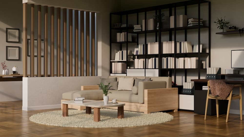 - En cloison légère, il redessine la pièce en créant des espaces distincts, comme séparer le coin repas du salon sans fermer la perspective.