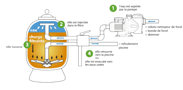Si nous disons « filtre pour un meilleur traitement », c’est parce que la qualité de l’eau dépend à 80% de la filtration mécanique et à 20% du traitement avec des produits. Si la pompe filtrante correspond au cœur de la piscine, le filtre est l’équivalent du poumon.