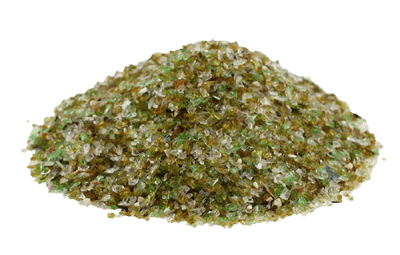 Le verre recyclé, broyé et poli, remplace avantageusement le sable. Son atout : une durée de vie qui atteint 7 à 9 ans et un geste pour l’environnement, puisqu’il s’agit d’un produit issu du recyclage.